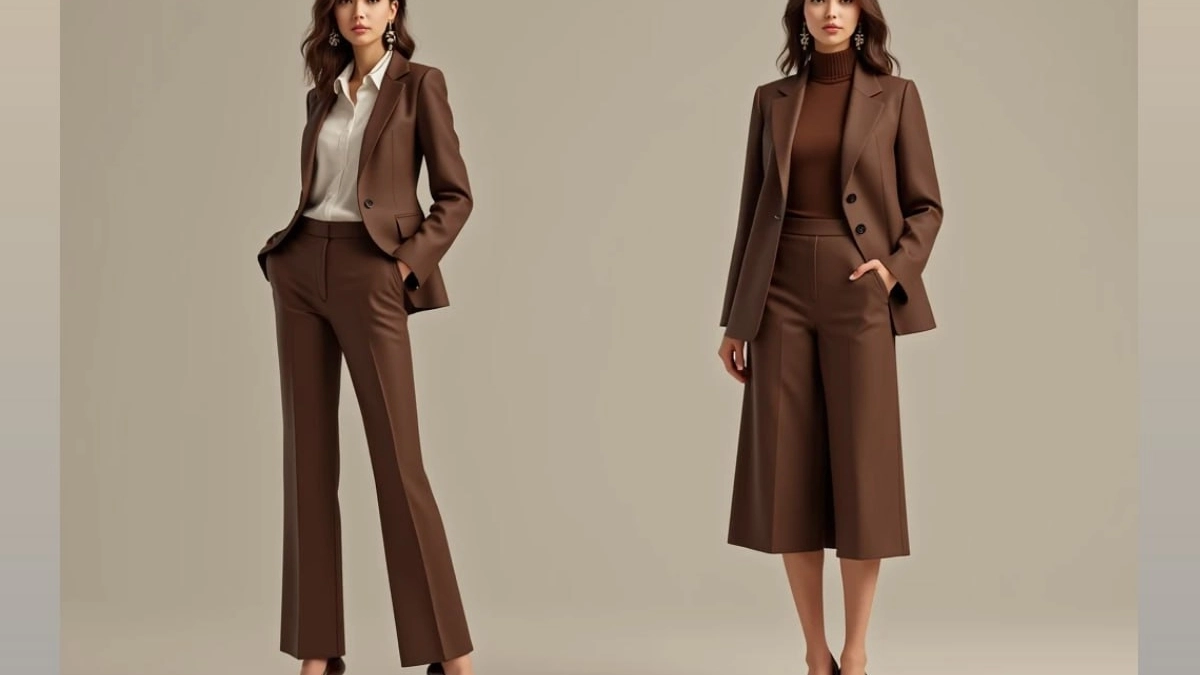 Брюки: Самый трендовый вариант — брюки с прямым кроем или слегка расклешенные от колена. Широкие палаццо в коричневом цвете смотрятся невероятно статусно. Избегайте узких, обтягивающих моделей — они остались в прошлом сезоне.