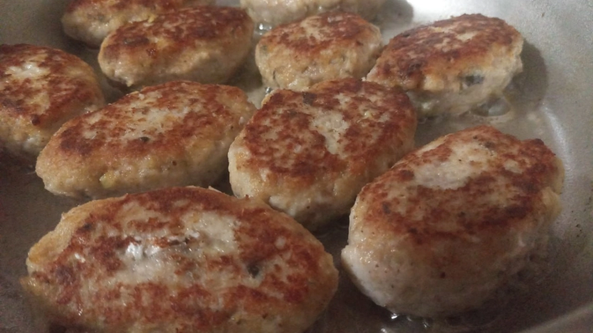 Если лук мелко нарезать ножом, кусочки сохраняют форму. Во время жарки они слегка подрумяниваются и дают характерную сладость жареного лука. Такие котлеты получаются более плотными и лучше держат форму. Внутри ощущается текстура — это вариант для тех, кто любит «классическую» структуру мяса без излишней мягкости.