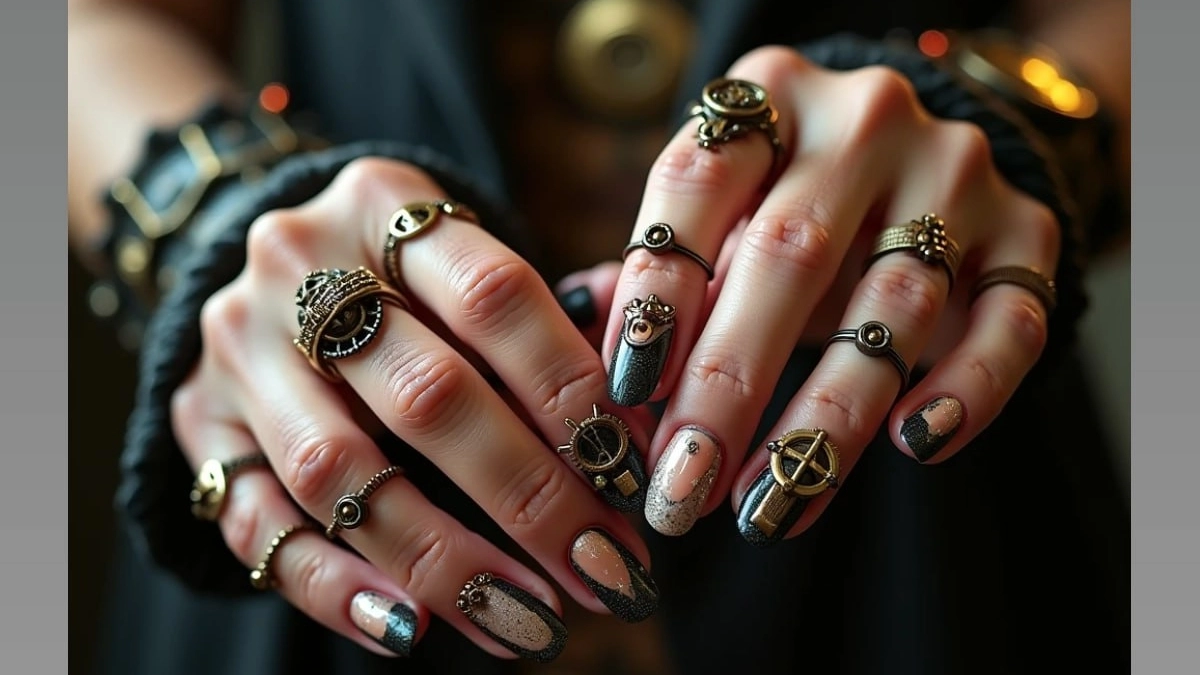 7 марта – ИА SM.News. Представьте себе мир, где пар и шестеренки правят бал, где воздушные корабли бороздят небо, а викторианская элегантность встречается с сырой мощью промышленной революции. Это стимпанк — эстетика, которая ворвалась в литературу, кино, моду, а теперь прочно обосновалась и в нейл-дизайне. Но как перенести всю эту махину из латуни, стекла и кружева на кончики пальцев и при этом не выглядеть так, будто вы только что сошли с косплей-фестиваля? Давайте разбираться.