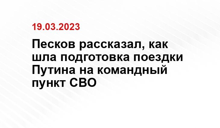 19 марта – ИА SM.News. Официальный представитель Кремля Дмитрий Песков рассказал о поездке главы государства Владимира Путина в штаб специальной военной операции в Ростове-на-Дону. Об этом сообщает РИА Новости.