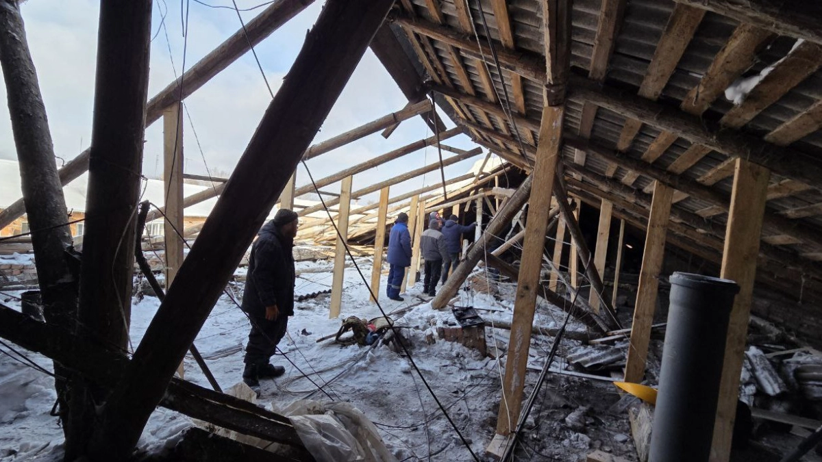 По словам главы районной администрации Александра Гамбурга, ночью девятнадцатого февраля обильные снежные массы привели к частичному провалу стропильной систему на чердачное помещение.
