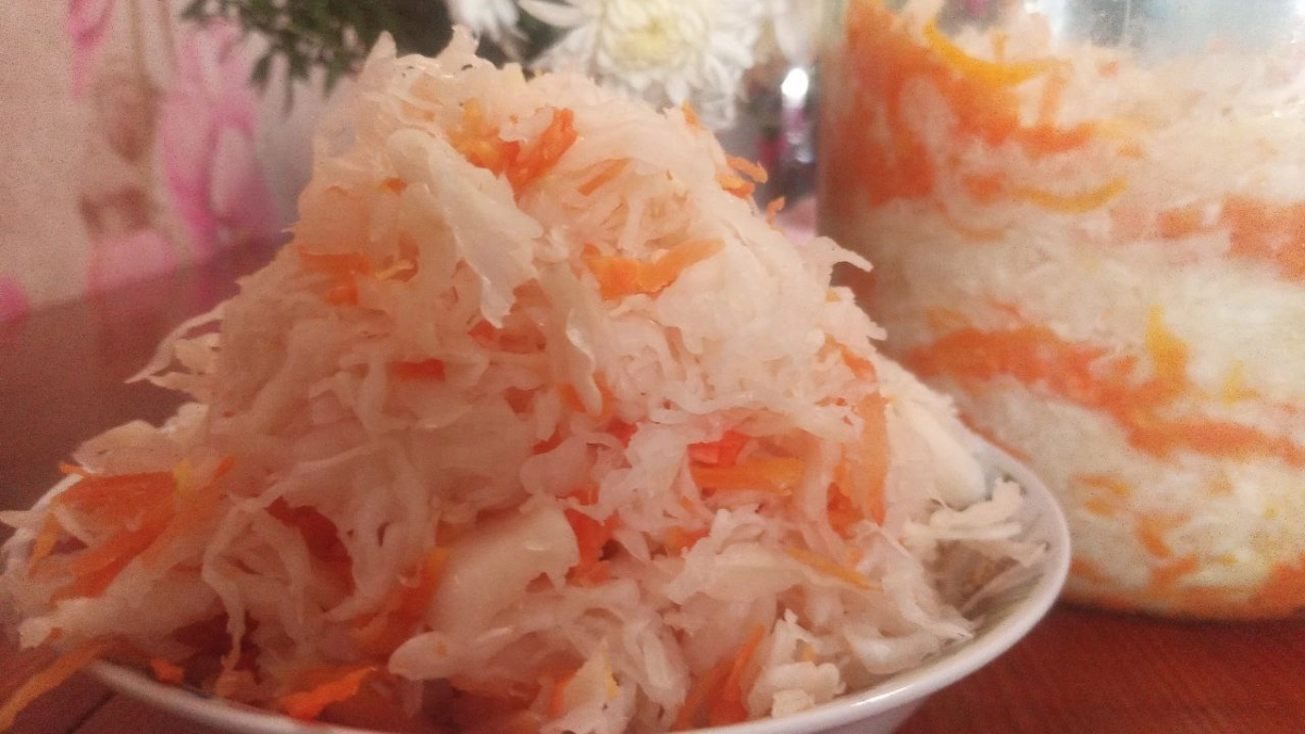 База: На 1 кг нашинкованной капусты — 100 г тертой моркови и 18-20 г каменной соли (не йодированной!).